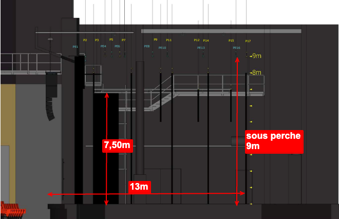 | Trad | Découpes 7 x R.Juliat 613sx 2 x R.Juliat 613s 7 x R.Juliat 614sx 4 x R.Juliat 614s 6 x R.Juliat 713sx 6 x R.Juliat 714sx PC 30 x ADC C101 8 x R.Juliat 329 HPC Cycliodes: 12 x RJ 12 x ADB Pars : 50 x PAR64 220v long noir 4 x barres ACL de 4 PAR64 110v CP60 Pars Led : 12 x Starway PARKOLOR120 1 x R.Juliat Super Korrigan – poursuite HMI 1200 – 1 x FL1300 Blinder |