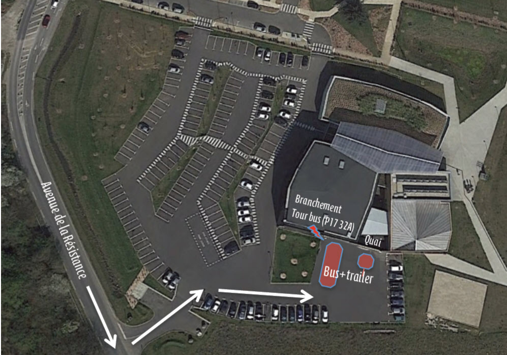 Le Plan::Grande Salle Accès Tourbus Camion truck More plans Plan de masse Accès Tourbus Camion truck Vue globale de la salle More plans